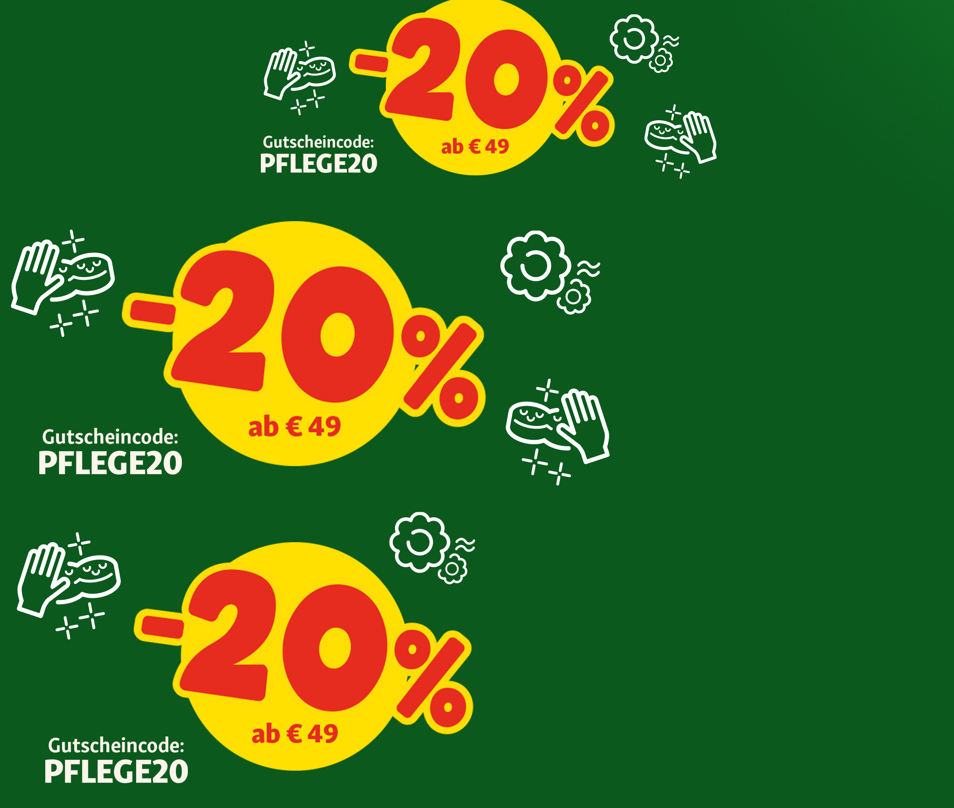 Sichere dir 20% Rabatt auf das gesamte Pflege-, Hygiene- und Streu-Sortiment** ab € 49,- Bestellwert – nur vom 12.03. bis 15.03.26. So geht’s: Gutscheincode PFLEGE20 online eingeben oder Coupon in der App aktivieren.