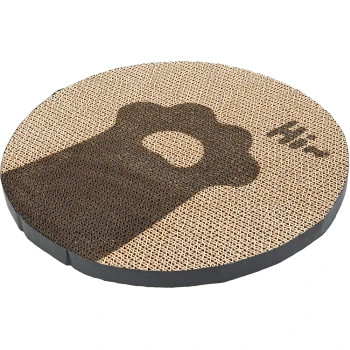 Papp-Katzenkratzbrett mit einer strukturierten Oberfläche, mit einem marineblauen und weißen gestreiften Rand.