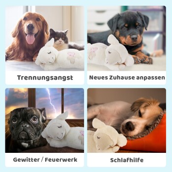 - Simuliert den Herzschlag einer Mutterhündin – beruhigt bei Trennung, Gewitter oder neuen Umgebungen