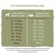 Diese Angaben sind Richtwerte. Der individuelle Bedarf hängt von Faktoren wie Alter, Rasse, Aktivität und Haltungsbedingung ab. Bei gesteigerter Aktivität bitte Futtermenge entsprechend erhöhen.