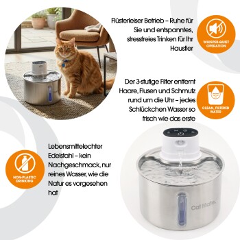 Cat Mate 2,2-Liter kabelloser Katzen-Trinkbrunnen aus Edelstahl