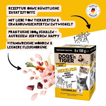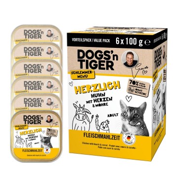 Dogs'n Tiger Adult Nassfutter Katze, Herzlich, Huhn, Rinderherzen & Karotte