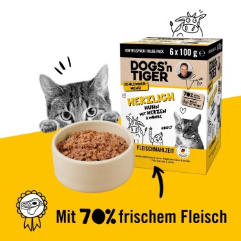 Wenn’s nach deiner Katze geht, darf es ruhig ein bisschen mehr Fleisch sein. Mit Herzlich bringst du genau das auf den Tisch – hochwertiges Nassfutter voller Geschmack, Energie und Natürlichkeit, ganz ohne Kompromisse. In der praktischen Multibox mit sechs Schalen à 100 g steckt ehrliche Qualität, die du sehen und deine Katze schmecken kannst.