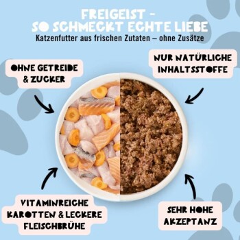 Du suchst ein Nassfutter, das so wild und frei ist wie deine Katze selbst? Mit Freigeist entscheidest du dich für hochwertige, artgerechte Ernährung – ganz ohne Schnickschnack, aber mit jeder Menge Geschmack und natürlicher Power.
