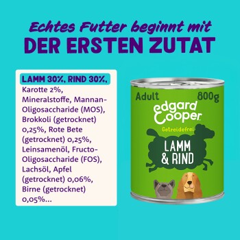 Edgard & Cooper Nassfutter Hund, Adult, Lamm und Rind 6x800 g