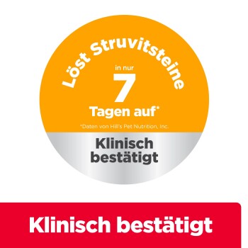 Vorteile: Reduziert klinisch nachgewiesen das Risiko eines erneuten Auftretens von Symptomen einer FIC um 89%. Enthält L-Tryptophan und Milchproteinhydrolysat zur Minderung von Stress, ein bekannter Risikofaktor für FIC. Klinisch nachgewiesene Auflösung von Struvitsteinen innerhalb von nur 14 Tagen. Hervorragender Geschmack, den Ihre Katze lieben wird.
