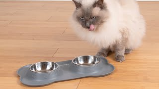 - hochwertige Silikon Napfunterlage mit herausnehmbaren Edelstahlnäpfen