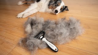 Der extra breite Bürstenkopf entfernt lose und verfilzte Unterwolle besonders schnell.