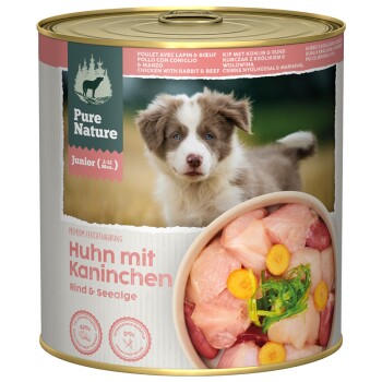 Pure Nature Nassfutter Hund Junior Huhn mit Kaninchen & Rind 6 x 800 g