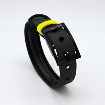 THE DOG IDEA Biothane Halsband Schwarz neon gelb XXL