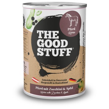 FEUCHTFUTTER in bewährter THE GOODSTUFF Super Premium-Qualität. Unser Hunde-Nassfutter enthält 70% frisches Muskelfleisch und hochwertige Innereien, wie Herz und Leber in Lebensmittelqualität. Schonend gegart und verfeinert mit regional verfügbarem Obst & Gemüse sowie ausgewählten Kräutern und Leinöl.
