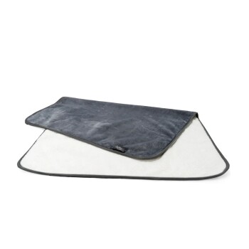 Gönne deinem Liebling einen Platz, an dem er sich jederzeit wohlfühlen kann – ohne dass du dir Sorgen um nasse Pfoten, Schmutz oder Missgeschicke machen musst. Die Pearl-Decke vereint gemütlichen Liegekomfort mit zuverlässigem Schutz: eine Seite aus weichem, edlem Dunkelgrau-Plüsch, die andere aus hellem, flauschigem Sherpa-Fleece für extra Kuscheligkeit.