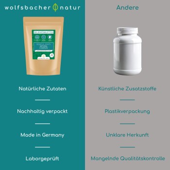Teufelskralle, Grünlippmuschel, Glucosamin und Bio Hagebutte, versorgen deinen pelzigen Freund mit essentiellen und pflanzlichen Nährstoffen. Jede frische Charge von Rohstoffen wird in Laboren streng auf Reinheit geprüft - für ein 100% natürliches Produkt.