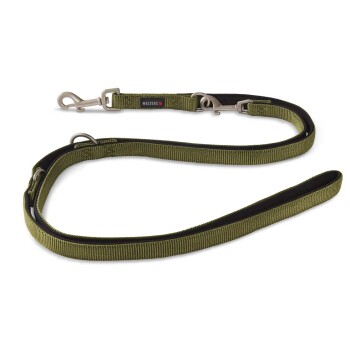 Sie besteht auf der Oberseite aus einem robustem Nylonmaterial, die Innenseite ist mit weichem Neopren ausgestattet. Die Leine gibt es in einer Länge von zwei oder drei Metern, sodass der Hund genug Bewegungsfreiheit hat, Herrchen oder Frauchen jedoch die volle Kontrolle ausüben können. Für eine besonders große Flexibilität ist die Leine dreifach verstellbar, damit sie situationsbedingt gekürzt werden kann.
