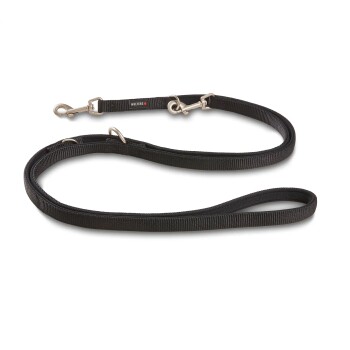 Sie besteht auf der Oberseite aus einem robustem Nylonmaterial, die Innenseite ist mit weichem Neopren ausgestattet. Die Leine gibt es in einer Länge von zwei oder drei Metern, sodass der Hund genug Bewegungsfreiheit hat, Herrchen oder Frauchen jedoch die volle Kontrolle ausüben können. Für eine besonders große Flexibilität ist die Leine dreifach verstellbar, damit sie situationsbedingt gekürzt werden kann.