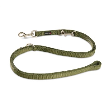 Die Leine gibt es in einer Länge von zwei oder drei Metern, sodass der Hund genug Bewegungsfreiheit hat, Herrchen oder Frauchen jedoch die volle Kontrolle ausüben können. Für eine besonders große Flexibilität ist die Leine dreifach verstellbar, damit sie situationsbedingt gekürzt werden kann. Die Leine besteht aus einem sehr robusten Nylonmaterial.